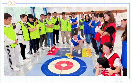 激情旱地冰壶:冰壶,一项生疏但却独特的活动项目,此项目能让你充满激情,欢呼声、呐喊声不断,选手们和各自队伍商量对策,注意力高度集中,单膝跪地、手握壶柄、认真瞄准、用力一推、冰壶的碰撞声响彻整个赛场。